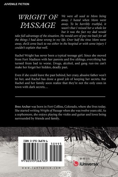 We were all used to Mom being away. I hated when Mom went away. To be horribly truthful, it wasn't that I missed her a whole lot but it was the fact my dad would take full advantage of the situation. He would sort of pay me back for all the things I had done wrong in my life. Over half the time Mom went away, she'd come back to me either in the hospital or with some injury I couldn't explain that well. Rachel Wright has never been a typical teenage girl. Since she moved from Fort Madison with her parents and five siblings, everything has turned from bad to worse. Drugs, alcohol, and gang run-ins can't make her forget her hidden, deadly past. Even if she could leave the past behind, her crazy, abusive father won't let her, and Rachel has done a good job of keeping her secrets. But Rachel and her family soon realize that they're not the only ones in town with dark secrets.