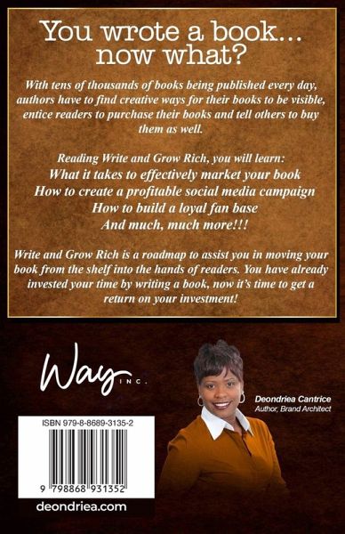 You wrote a book now what? With tens of thousands of books being published every day, authors have to find creative ways for their books to be visible, entice readers to purchase their books and tell others to buy them as well. Write and Grow Rich" elevates the concept of writing from mere text to a strategic force that, when wielded right, can unlock countless opportunities. Whether you're an aspiring writer, a professional seeking to up your game, or an entrepreneur aiming for the stars, this book is your ladder to new heights of success and wealth accumulation. ¿Envision a life where financial abundance is not just a dream, but a product of your written words. "Write and Grow Rich" is more than a book-it's a key to a life of financial independence and prosperity. Dive into its pages and emerge with a skill set that the world doesn't just admire but is ready to pay for.