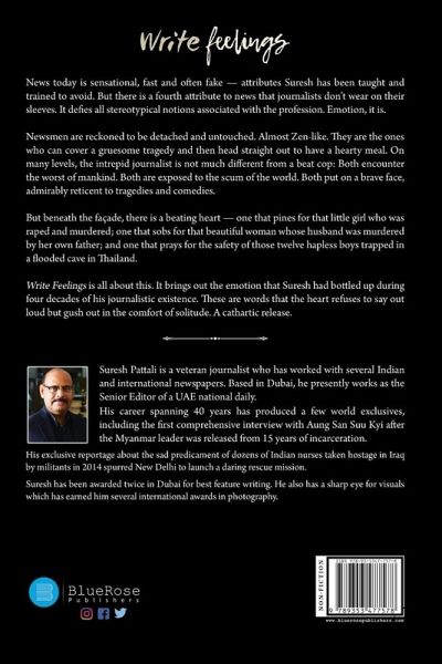 News today is sensational, fast and often fake - attributes Suresh has been taught and trained to avoid. But there is a fourth attribute to news that journalists don't wear on their sleeves. It defies all stereotypical notions associated with the profession. Emotion, it is. Newsmen are reckoned to be detached and untouched. Almost Zen-like. They are the ones who can cover a gruesome tragedy and then head straight out to have a hearty meal. On many levels, the intrepid journalist is not much different from a beat cop: Both encounter the worst of mankind. Both are exposed to the scum of the world. Both put on a brave face, admirably reticent to tragedies and comedies. But beneath the façade, there is a beating heart - one that pines for that little girl who was raped and murdered; one that sobs for that beautiful woman whose husband was murdered by her own father; and one that prays for the safety of those twelve hapless boys trapped in a flooded cave in Thailand. Write Feelings is all about this. It brings out the emotion that Suresh had bottled up during four decades of his journalistic existence. These are words that the heart refuses to say out loud but gush out in the comfort of solitude. A cathartic release.