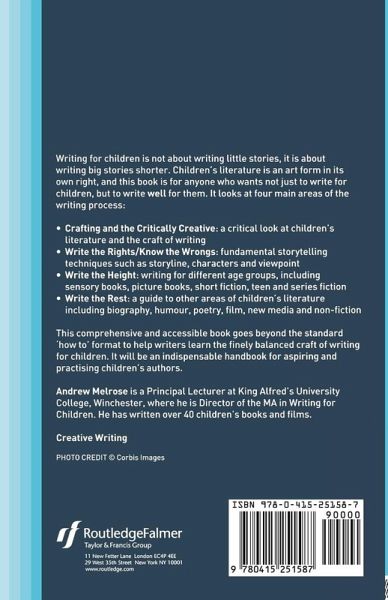 Writing for children is not about writing little stories, it is about writing big stories, shorter. Children's literature is an art form in its own right, and this book is for everyone who wants not just to write for children, but to write well for them. This short guide to creative writing for children is based on the author's own successful MA course. Andrew Melrose provides guidance on every aspect of the process of writing for children. He stresses the importance of 'writing for' the child and not 'writing to or at' them. Literacy and learning depend on writing and reading and it is therefore the responsibility of the writer to understand who they are writing for. The book is divided into four sections which cover all aspects of the writing process. This book goes far beyond the 'how to' format to help writers learn the finely balanced craft of writing for children. It will be an indispensable handbook for aspiring and practising children's authors.