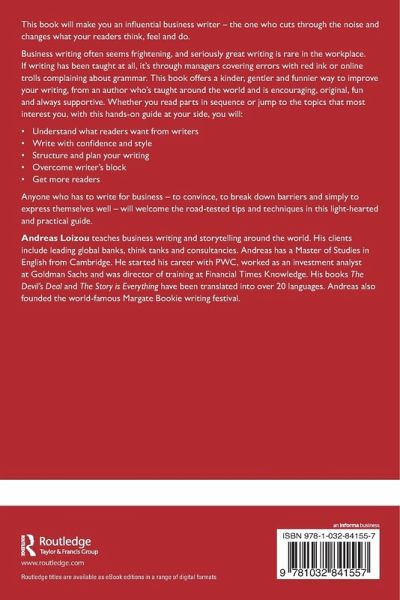 Andreas Loizou teaches business writing and storytelling around the world. His clients include leading global banks, think tanks and consultancies. Andreas has a Master of Studies in English from Cambridge. He started his career with PWC, worked as an investment analyst at Goldman Sachs and was director of training at Financial Times Knowledge. His books The Devil's Deal and The Story is Everything have been translated into over 20 languages. Andreas also founded the world-famous Margate Bookie writing festival.