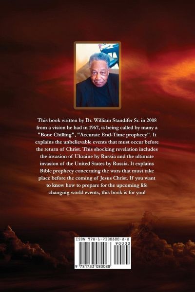 This book written by Dr. William Standifer Sr. in 2008 from a vision he had in 1967, is being called by many a "Bone Chilling", "Accurate End-Time prophecy". It explains the unbelievable events that must occur before the return of Christ. This shocking revelation includes the invasion of Ukraine by Russia and the ultimate invasion of the United States by Russia. It explains Bible prophecy concerning the wars that must take place before the coming of Jesus Christ. If you want to know how to prepare for the upcoming life changing world events, this book is for you!