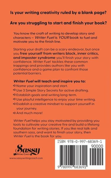 Is your writing creativity ruled by a blank page? Are you struggling to start and finish your book? You know the craft of writing to develop story and characters - Writer Fuel is YOUR book to fuel and motivate you to the finish line. Starting your draft can be a scary endeavor, but once you free yourself from writer's block, inner critics, and imposter syndrome you'll finish your story with confidence. Writer Fuel tackles these common trappings and provides authors like you with confidence and a game plan to confront those potential barriers. Writer Fuel will teach and inspire you to:Name your inspiration and start. Use 3 Simple Story Secrets for active drafting. Establish goals for writing long-term. Use playful intelligence to enjoy your time writing. Establish a creative mindset to support yourself in your journey. And much more! Writer Fuel helps you stay motivated by providing you tools to cultivate your creative fire and build a lifelong foundation for writing stories. If you like real talk and southern sass, and want to finish your story, then Writer Fuel is the book for you. Don't waste another second struggling with a blank page!