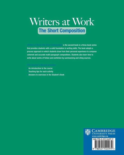 The Teacher's Manual to Writers at Work: The Short Composition provides an introduction to the course, teaching tips for every activity, and an extensive answer key.