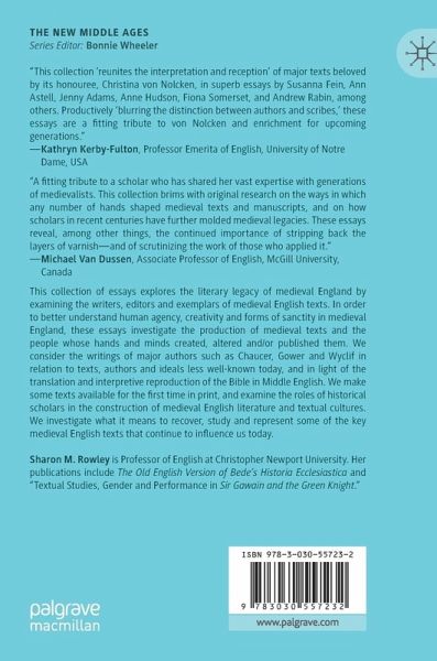 This collection of essays explores the literary legacy of medieval England by examining the writers, editors and exemplars of medieval English texts. In order to better understand the human agency, creativity and forms of sanctity of medieval England, these essays investigate both the production of medieval texts and the people whose hands and minds created, altered and/or published them. The chapters consider the writings of major authors such as Chaucer, Gower and Wyclif in relation to texts, authors and ideals less well-known today, and in light of the translation and interpretive reproduction of the Bible in Middle English. The essays make some texts available for the first time in print, and examine the roles of historical scholars in the construction of medieval English literature and textual cultures. By doing so, this collection investigates what it means to recover, study and represent some of the key medieval English texts that continue to influence us today.