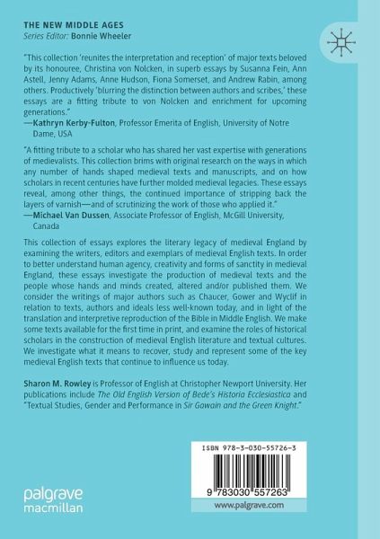 This collection of essays explores the literary legacy of medieval England by examining the writers, editors and exemplars of medieval English texts. In order to better understand the human agency, creativity and forms of sanctity of medieval England, these essays investigate both the production of medieval texts and the people whose hands and minds created, altered and/or published them. The chapters consider the writings of major authors such as Chaucer, Gower and Wyclif in relation to texts, authors and ideals less well-known today, and in light of the translation and interpretive reproduction of the Bible in Middle English. The essays make some texts available for the first time in print, and examine the roles of historical scholars in the construction of medieval English literature and textual cultures. By doing so, this collection investigates what it means to recover, study and represent some of the key medieval English texts that continue to influence us today.