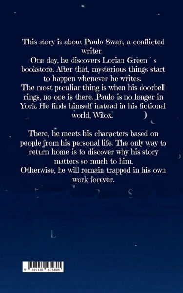 Paulo Swan is a conflicted writer. One day, he stepps foot into Lorian bookstore. After that, mysterious things start to happen. But the most peculiar is when his doorbell rings. No one is there, and he is no longer in York. He is in his fictional world Wilox. He is told that the only way to return to his world is if he knows the correct answer to why his story matters so much to him. Otherwise, he will remain trapped in his own work forever.
