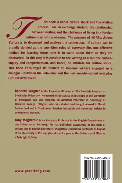 This book is about culture shock and the writing process. For a student, the relationship between writing and the challenge of living in a foreign culture may not be obvious. The purpose of Writing Across Culture is to aid the student in documenting and analyzing the connection. If culture can be broadly defined as the unwritten rules of every-day life, one effective method for learning these rules is to write about them as they are discovered. In this way, it is possible to see writing as a tool for cultural inquiry and comprehension, and, hence, an antidote for culture shock. Writing Across Culture encourages its readers to become writers engaged in a dialogue-between the individual and the new society-about everyday cultural differences.