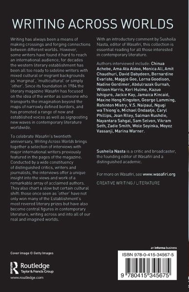 Writing Across Worlds brings together a selection of interviews with major international writers previously featured in the pages of the magazine. Conducted by a wide constituency of distinguished critics, writers and journalists, the interviews offer a unique insight into the views and work of a remarkable array of acclaimed authors. They also chart a slow but certain cultural shift: those once seen as 'other' have not only won many of the establishment's most revered literary prizes but have also become central figures in contemporary literature, writing across and into all our real and imagined worlds. With an introductory comment by Susheila Nasta, editor of Wasafiri, this collection is essential reading for all those interested in contemporary literature. Authors interviewed include: Chinua Achebe, Ama Ata Aidoo, Monica Ali, Amit Chaudhuri, David Dabydeen, Bernadine Evaristo, Maggie Gee, Lorna Goodison, Nadine Gordimer, Abdulrazak Gurnah, Wilson Harris, Keri Hulme, Kazuo Ishiguro, Jackie Kay, Jamaica Kincaid, Maxine Hong Kingston, George Lamming, Rohinton Mistry, V.S. Naipaul, Ngugi wa Thiong'o, Michael Ondaatje, Caryl Phillips, Joan Riley, Salman Rushdie, Nayantara Sahgal, Sam Selvon, Vikram Seth, Zadie Smith, Wole Soyinka, Moyez Vassanji, Marina Warner.