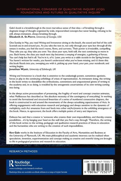 Writing and Immanence explores a radical re-imagining of writing, immanence in inquiry and the possibilities for autoethnographic practice.