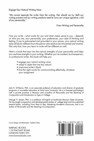 'We cannot separate the writer from the writing. Nor should we try. Both our writing process and our writing products need to carry our unique signature, a bit of our personality.' - From Writing and Personality How you write - what works for you and what makes sense to you - depends on who you are, your personality, your preferences, your style of thinking and feeling. If you're extraverted and grounded in your senses, your natural writing style will be far different from the person who tends to be introverted and intuitive. Not only that, how you learn to write will be different as well. Here's a book that taps into the natural strengths of your personality and helps you use those strengths in your writing. Whether you're a student, businessperson, or professional writer, this book will help you: engage your natural writing voice; adapt to styles that are less natural; overcome writer's block; and find the right words for communicating effectively, whatever your assignment.