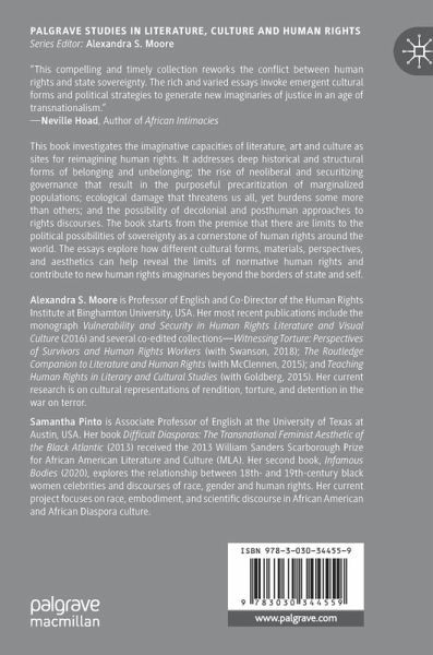 This book investigates the imaginative capacities of literature, art and culture as sites for reimagining human rights, addressing deep historical and structural forms of belonging and unbelonging; the rise of xenophobia, neoliberal governance, and securitization that result in the purposeful precaritization of marginalized populations; ecological damage that threatens us all, yet the burdens of which are distributed unequally; and the possibility of decolonial and posthuman approaches to rights discourses. The book starts from the premise that there are deep-seated limits to the political possibilities of state and individual sovereignty in terms of protecting human rights around the world. The essays explore how different forms, materials, perspectives, and aesthetics can help reveal the limits of normative human rights and contribute to the cultural production of new human rights imaginaries beyond the borders of state and self.