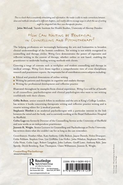 McMillan Foreword. Part I: Theory and Research.J. Wright The Passion of Science the Precision of Poetry: Therapeutic Writing a Review of the Literature. G. Lowe Cognitive Psychology and the Biomedical Foundations of Writing Therapy. J. Speedy The Contribution of Narrative Ideas and Practices in Therapy. C. Hunt Reading Ourselves: Imagining the Reader in the Writing Process. D. Steinberg From Archetype to Impressions: The Magic of Words. Part II: Writing in Therapy.A. Ryle Writing by Patients and Therapists in Cognitive Analytic Therapy. K. Thompson Journal Writing as a Therapeutic Tool. S. Howlett Writing the Link between Body and Mind: The Use of Writing in Clients with Chronic Stress-related Medical Disorders. C. Lago 'When I Write I Can Think': Personal Uses of Writing by International Students. G. Bolton J. Latham 'Every Poem Breaks a Silence That Had to be Overcome': The Therapeutic Role of Poetry Writing. C. Williamson Writing as a Therapy for People in Recovery from Addiction. Part III: Writing Online.K. Anthony Therapy Online: The Therapeutic Relationship in Typed Text. J. Wright 'She Put Down in Writing What Was in Her Mind': Developing Online Text-based Counselling in the Workplace. L. Griffiths Electronic Text Based Communication: Assumptions and Illusions Created by the Transference Phenomena. S. Howlett R. Langdon Message to Jo: The Samaritans Experience of E-mail Befriending. S. Goss K. Anthony Ethical and Practical Dimensions of Online Writing Cures. Part IV: Reflective Practice.C. Feltham J. Daniels Reflective and Therapeutic Writing in Counsellor Training. A. Ryle The Uses of Writing in the Supervision of Cognitive Analytic Therapy. G. Bolton H. Allan H. Drucquer Black and Blue: Writing for Reflective Practice. J. Hilsdon After the Session: 'Freewriting' in Response. L. Heller Writing in a Reflective Practice Group for Staff Working with People with Dementia.