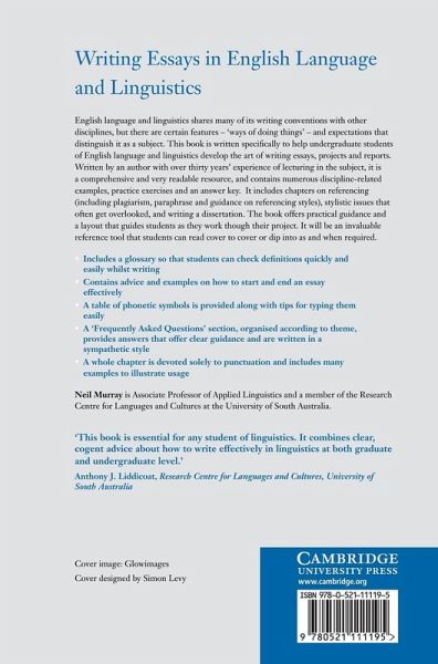 English language and linguistics shares many of its writing conventions with those of other disciplines, but there are certain features and expectations that distinguish it as a subject. This book is written specifically to help undergraduate students of English language and linguistics develop the art of writing essays, projects and reports. Written by an author with over 30 years' experience of lecturing in the subject, it is a comprehensive and very readable resource and contains numerous discipline-related examples, practice exercises and an answer key. It includes chapters on referencing (including plagiarism, paraphrase and guidance on referencing styles), stylistic issues that often get overlooked, and writing a dissertation. The book offers practical guidance and a layout that guides students as they work though their project. It will be an invaluable reference tool that students can read cover to cover or dip into as and when required.