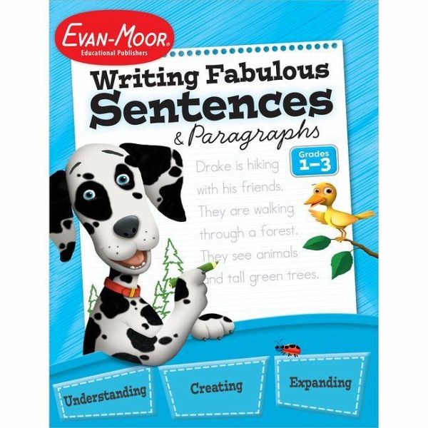Teach students in grades 1-3 to write fabulous sentences and paragraphs with this easy-to-use resource that includes everything you need! This 112-page book includes scaffolded lessons and activities that progress from writing sentences to writing paragraphs. This writing workbook includes over 70 reproducible pages of activities, writing models, writing prompts, student forms, and complete teaching instructions. The lessons and activities progress in difficulty and include concept charts that provide explanations and examples. These sentence-writing worksheets include: Understanding Sentences: * What is a sentence? * A sentence has two parts * Action verbs and linking verbs Writing Fabulous Sentences: * You can use adjectives * You can use adverbs * You can use new words Understanding Paragraphs: * What is a paragraph? * A paragraph has three parts Writing Fabulous Paragraphs * Different kinds of paragraphs: opinion, compare, contrast, narrative, descriptive, and how-to. BONUS! The concept charts can be assembled into a sentences-and-paragraphs handbook for students in grades 1-3 to refer to as they write. About Evan-Moor Igniting young minds to help every child learn and succeed. Founded by teachers, we create engaging and meaningful learning resources for children in grades PreK-8. We are excited to partner with teachers and parents to nurture children's hearts and minds and help them reach their full potential.