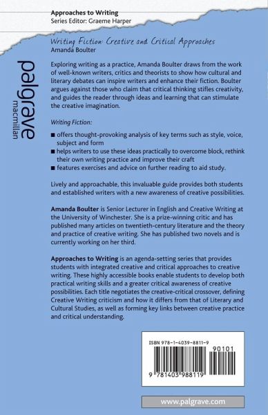 Exploring writing as a practice, Boulter draws from the work of writers and theorists to show how cultural and literary debates can help writers enhance their own fiction. Negotiating the creative-critical crossover, this is an approachable book that helps students develop practical writing skills and a critical awareness of creative possibilities.