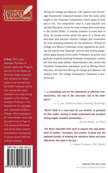 Writing for College and Beyond: Life Lessons from the College Composition Classroom explains how the many skills taught in the Freshman Composition course apply at work and in life. The composition class is a pre-requisite and General Education course for most colleges and universities in the United States. It reaches students in every area of study. As people wonder about the value of a liberal arts education and question whether colleges and universities are truly preparing students for the workforce, Writing for College and Beyond challenges those arguments by pointing out exactly how classroom policies and writing assignments apply beyond school walls. Professors, lecturers, and graduate students teaching Freshman Composition courses will find this book helpful. Administrators who service the Freshman Composition population, such as Writing Center Directors, will also find Writing for College and Beyond: Life Lessons from the College Composition Classroom a wonderful aid.