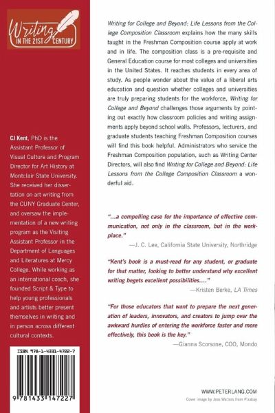 Writing for College and Beyond: Life Lessons from the College Composition Classroom explains how the many skills taught in the Freshman Composition course apply at work and in life. The composition class is a pre-requisite and General Education course for most colleges and universities in the United States. It reaches students in every area of study. As people wonder about the value of a liberal arts education and question whether colleges and universities are truly preparing students for the workforce, Writing for College and Beyond challenges those arguments by pointing out exactly how classroom policies and writing assignments apply beyond school walls. Professors, lecturers, and graduate students teaching Freshman Composition courses will find this book helpful. Administrators who service the Freshman Composition population, such as Writing Center Directors, will also find Writing for College and Beyond: Life Lessons from the College Composition Classroom a wonderful aid.