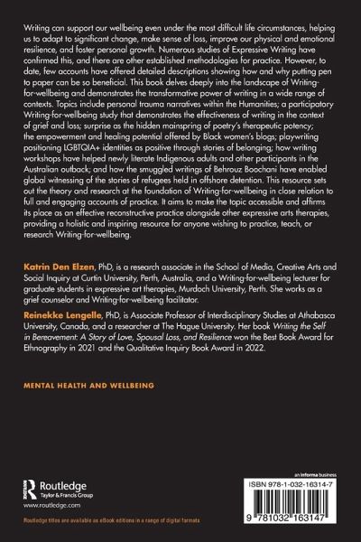 "That writing has the 'power to transform' and respond to 'individual and collective trauma' is well documented here. Den Elzen and Lengelle's book is a welcome addition to the growing field of Writing-for-Wellbeing. These chapters are generous offerings from experienced writers, scholars and practitioners who openly share their skills as facilitators and personal reflections as individuals healing themselves. The contributions explore an unexpectedly diverse range of applications and cast light on a wide variety of global settings. Writing-for-Wellbeing narrates the successes and celebrates new possibilities in this important area."