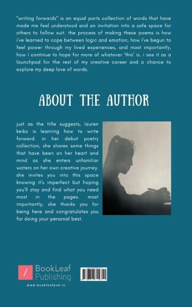 "writing forwards" is an equal parts collection of words that have made me feel understood and an invitation into a safe space for others to follow suit. the process of making these poems is how i've learned to cope between logic and emotion, how i've begun to feel power through my lived experiences, and most importantly, how i continue to hope for more of whatever 'this' is. i see it as a launchpad for the rest of my creative career and a chance to explore my deep love of words.