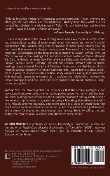 Writing from the Hearth probes the relationship of gender to space in close readings of texts of Francophone women writers of Africa: Aoua KZita, Mariama B%, Calixthe Beyala, and Aminata Sow Fall, and the Caribbean: Marie Chauvet, Simon Schwarz-Bart, Maryse CondZ, and Edwidge Danticat. It explores the hypothesis that the female protagonist moves toward empowerment by appropriating public space and transforming domestic space into alternative space.