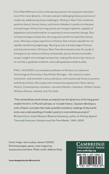 Synthesizing systems theory, literary history, and recent debates in poetics, this book offers a theory and history of the American long poem as an emergent system. This approach shows that the long poem is a dynamic, intricate, and culturally-entangled literary practice, with continued relevance for our digital age.