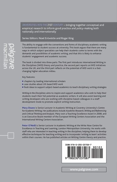 Writing in the Disciplines' (WiD) is a growing field in which discipline-based academics, writing developers, and learning technologists collaborate to help students succeed as subject specialists. This book places WiD in its theoretical and cultural contexts and reports on initiatives taking place at a range of UK higher education institutions. Also includes surveys of current developments and scholarship in the US, Australia, Europe and elsewhere, making it of interest to both a UK and an international audience.