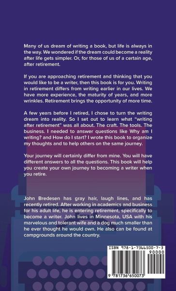 Many of us dream of writing a book, but life is always in the way. We wondered if the dream could become a reality after life gets simpler. Or, for those of us of a certain age, after retirement. If you are approaching retirement and thinking that you would like to be a writer, or any other creative endeavor, then this book is for you. Writing in retirement differs from writing earlier in our lives. We have more experience, the maturity of years, and more wrinkles. Retirement brings the gift of more time. A few years before I retired, I decided to turn the writing dream into reality. So I set out to learn what "writing after retirement" was all about. The craft. The tools. The business. I needed to answer questions like Why am I writing? and How do I start? I wrote this book to organize my thoughts and to help others on the same journey. Your journey will certainly differ from mine. You will have different answers to the questions. This book will help you create your own journey to becoming a writer when you retire.¿
