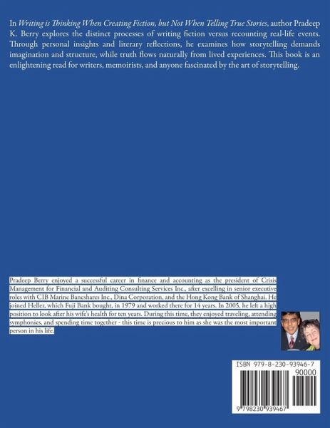 In Writing is Thinking When Creating Fiction, but Not When Telling True Stories, author Pradeep K. Berry explores the distinct processes of writing fiction versus recounting real-life events. Through personal insights and literary reflections, he examines how storytelling demands imagination and structure, while truth flows naturally from lived experiences. This book is an enlightening read for writers, memoirists, and anyone fascinated by the art of storytelling.