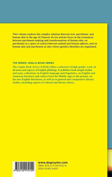 Owing to its relatedness to parchment as the primary writing matter of the Middle Ages, human skin was not only a topic to write about in medieval texts, it was also conceived of as an inscribable surface, both in the material and in the figurative sense. This volume explores the textuality of human skin as discussed by Geoffrey Chaucer and other writers (medical, religious, philosophical, and literary) of the fourteenth and fifteenth century. It presents four main aspects of the complex relations between text, parchment, and human skin as they have been discussed in recent scholarship. These…mehr