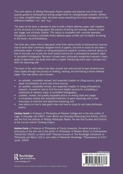 This sixth edition of Writing Philosophy Papers updates and expands one of the most popular guides to philosophical writing assignments for undergraduate students. Written in a clear, straightforward style, the book covers everything from time management to the difference between "i.e." and "e.g."