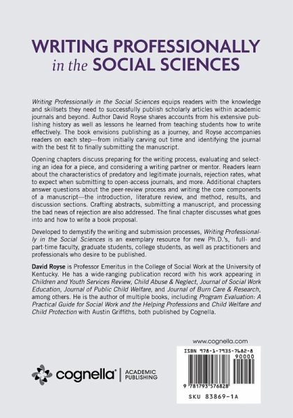 Writing Professionally in the Social Sciences equips readers with the knowledge and skillsets they need to successfully publish scholarly articles within academic journals and beyond. Author David Royse shares accounts from his extensive publishing history as well as lessons he learned from teaching students how to write effectively. The book envisions publishing as a journey, and Royse accompanies readers on each step-from initially carving out time and identifying the journal with the best fit to finally submitting the manuscript. Opening chapters discuss preparing for the writing process, evaluating and selecting an idea for a piece, and considering a writing partner or mentor. Readers learn about the characteristics of predatory and legitimate journals, rejection rates, what to expect when submitting to open-access journals, and more. Additional chapters answer questions about the peer-review process and writing the core components of a manuscript-the introduction, literature review, and method, results, and discussion sections. Crafting abstracts, submitting a manuscript, and processing the bad news of rejection are also addressed. The final chapter discusses what goes into and how to write a book proposal. Developed to demystify the writing and submission processes, Writing Professionally in the Social Sciences is an exemplary resource for new Ph.D.'s, full- and part-time faculty, graduate students, college students, as well as practitioners and professionals who desire to be published.