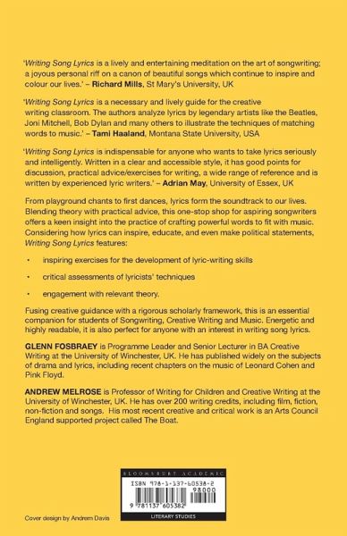This book is unique in offering practical advice on writing song lyrics within a critically informed framework. Part I provides the theoretical underpinning, while Part II covers the creative process, pulling together all the best songwriting advice and offering practical exercises. Fusing creative guidance with rigorous criticism, this is an essential companion for undergraduate and postgraduate students of Songwriting, Creative Writing and Music. Lively and accessible, it is a one-stop shop for all aspiring songwriters.