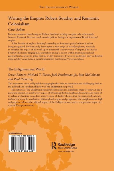 Examines a range of Robert Southey's writing to explore the relationship between Romantic literature and colonial politics during the expansion of Britain's second empire. This study draws upon a range of interdisciplinary materials to consider the impact of his work upon nineteenth-century views of empire.