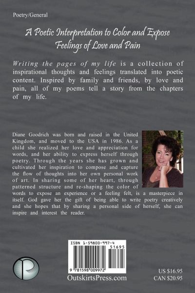 A Poetic Interpretation to Color and Expose Feelings of Love and Pain "Writing the Pages of My Life" is a collection of inspirational thoughts and feelings translated into poetic content. Inspired by family and friends, by love and pain, all of my poems tell a story from the chapters of my life.