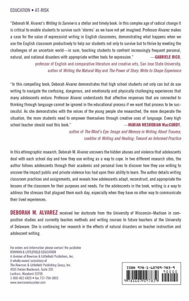 Chapter 1 Writing to Survive Chapter 2 Research Methodology for Prairie High School Chapter 3 Danielle- "I'm Safe Now." Chapter 4 Chase - "When I am Happy, I Have No Problems Thinking" Chapter 5 Diana -"Hell of a Life, Isn't It?" Chapter 6 Research Methodology in New Orleans Public High Schools Chapter 7 Lydia - "In Then I New My Friend was Dead." Chapter 8 Tyrone - "Doing Me is What I Do Best" Chapter 9 Writing Across Trauma, Tragedy and Adolescence