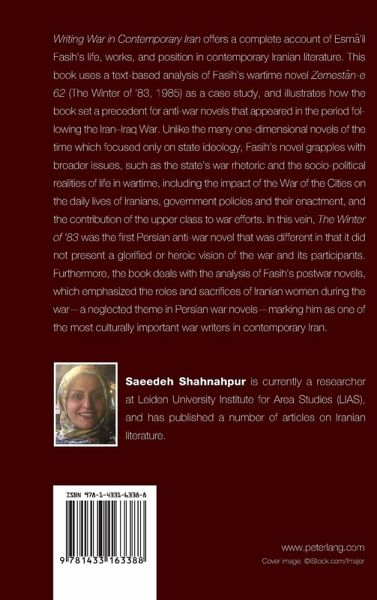 Writing War in Contemporary Iran offers a complete account of Esma'il Fasih's life, works, and position in contemporary Iranian literature. This book uses a text-based analysis of Fasih's wartime novel Zemestan-e 62 (The Winter of '83, 1985) as a case study, and illustrates how the book set a precedent for anti-war novels that appeared in the period following the Iran-Iraq War. Unlike the many one-dimensional novels of the time which focused only on state ideology, Fasih's novel grapples with broader issues, such as the state's war rhetoric and the socio-political realities of life in wartime, including the impact of the War of the Cities on the daily lives of Iranians, government policies and their enactment, and the contribution of the upper class to war efforts. In this vein, The Winter of '83 was the first Persian anti-war novel that was different in that it did not present a glorified or heroic vision of the war and its participants. Furthermore, the book deals with the analysis of Fasih's postwar novels, which emphasized the roles and sacrifices of Iranian women during the war-a neglected theme in Persian war novels-marking him as one of the most culturally important war writers in contemporary Iran.