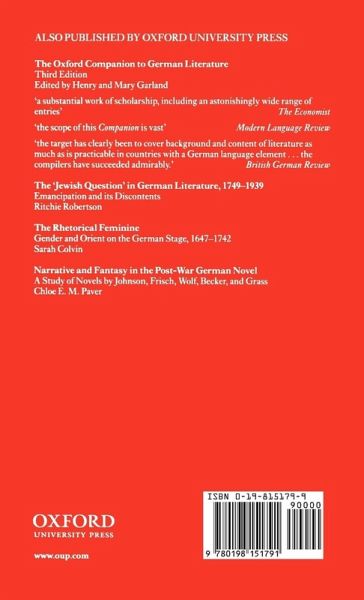 Writing Weimar shows how German literature between 1918 and 1933 is related both to the politics of the time and to longer-term cultural developments. Individual chapters discuss the dominant trends in particular literary genres and the significance of the term Neue Sachlichkeit, as well as the literary representation of the city, technology, and the First World War.