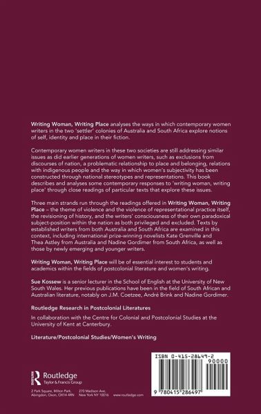 "Writing Woman, Writing Place" analyzes the ways in which contemporary women writers in the two "settler" colonies of Australia and South Africa explore notions fo self, identity and place in their fiction. Both Australian and South African societies are undergoing the process of coming to terms with their often violent colonial pasts and, in doing so, are also re-evaluating and re-examining the history of white privilege and indigenous dispossession. Contemporary women writers in these two societies are still writing about similar issues as did earlier generations of women, such as exclusions from discourses of nation, a problematic relationship to place and belonging, relations with indigenous people and the way in which women's subjectivity has been constructed through national stereotypes and representations. This book describes and analyzes some contemporary responses to "writing woman, writing place" through close readings of particular texts that explore these issues.