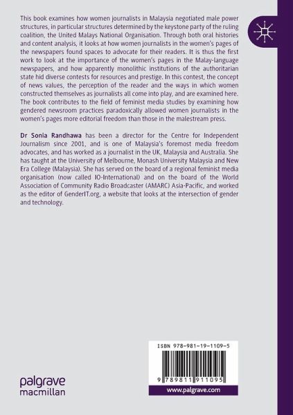 This book examines how women journalists in Malaysia negotiated male power structures, in particular structures determined by the keystone party of the ruling coalition, the United Malays National Organisation. Through both oral histories and content analysis, it looks at how women journalists in the women's pages of the newspapers found spaces to advocate for their readers. It is thus the first work to look at the importance of the women's pages in the Malay-language newspapers, and how apparently monolithic institutions of the authoritarian state hid diverse contests for resources and prestige. In this contest, the concept of news values, the perception of the reader and the ways in which women constructed themselves as journalists all come into play, and are examined here. The book contributes to the field of feminist media studies by examining how gendered newsroom practices paradoxically allowed women journalists in the women's pages more editorial freedom than those in the malestream press.