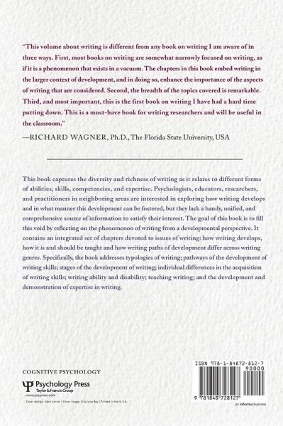 This book captures the diversity and richness of writing as it relates to different forms of abilities, skills, competencies, and expertise. Psychologists, educators, researchers, and practitioners in neighboring areas are interested in exploring how writing develops and in what manner this development can be fostered, but they lack a handy, unified, and comprehensive source of information to satisfy their interest. The goal of this book is to fill this void by reflecting on the phenomenon of writing from a developmental perspective. It contains an integrated set of chapters devoted to issues of writing: how writing develops, how it is and should be taught and how writing paths of development differ across writing genres. Specifically, the book addresses typologies of writing; pathways of the development of writing skills; stages of the development of writing; individual differences in the acquisition of writing skills; writing ability and disability; teaching writing; and the development and demonstration of expertise in writing.