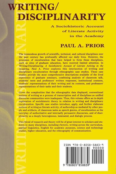 Over the past century, the explosive growth of scientific, technical, and cultural disciplines has profoundly affected our daily lives. However, processes of enculturation in sites such as graduate education that have helped to form these disciplines have received very limited research attention. In those sites, graduate students write diverse documents, including course papers, departmental examinations, theses and dissertations, grant and fellowship applications, and disciplinary publications. Thus, writing is one of the central domains of enculturation--an activity through which graduate students and professors display and negotiate disciplinary knowledge, genres, identities, and institutional contexts. This volume explores this intersection of writing and disciplinary enculturation through a series of ethnographic case studies. These case studies provide the most thorough descriptions available today of the lived experience of graduate seminars, combining analysis of classroom talk, students' texts and professor's written responses, institutional contexts, students' representations of their writing and its contexts, and professors' representations of their tasks and their students. Given the complexities that the ethnographic data displayed, the author found that conventional notions of writing as a process of transcription and of disciplines as unified discourse communities were inadequate. As such, this book also offers an in-depth exploration of sociohistoric theory in relation to writing and disciplinary enculturation. Specific case studies introduce, apply, and further elaborate notions of: * writing as literate activity, * authorship as mediated by other people and artifacts, * classroom tasks as speech genres, * enculturation as the interplay of authoritative and internally persuasive discourses, and * disciplinarity as a deeply heterogeneous, laminated, and dialogic process. This blend of research and theory should be of interest to scholars and students in such fields as writing studies, rhetoric, writing across the curriculum, applied linguistics, English for academic purposes, science and technology studies, higher education, and the ethnography of communication.