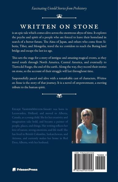 Written on Stone is an epic tale which comes alive across the enormous abyss of time. It explores the psyche and spirit of a people who are forced to leave their homeland in search of a better future. The Ainu of Japan, and others who come from Siberia, Tibet, and Mongolia, travel the ice corridors to reach the Bering land bridge and escape the last ice age. This sets the stage for a story of intrigue and amazing magical events, as they travel south through North America, Central America, and eventually to Tierra del Fuego, the end of the earth. Along the way, they record their stories on stone, so the account of their struggle will last throughout time. Suspensefully paced and alive with a remarkable cast of characters, Written on Stone is the story of that journey. It is a novel of empowerment, a moving tribute to the human spirit.