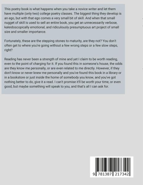 This is the second book of poetry, the first being "This Is How I Feel", written in 2018. This time around, my brother was able to make drawings for each chapter in the book.
