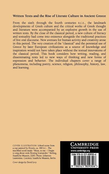 From the sixth through the fourth centuries BCE, the landmark developments of Greek culture and the critical works of Greek thought and literature were accompanied by an explosive growth in the use of written texts. By the close of the classical period, a new culture of literacy and textuality had come into existence alongside the traditional practices of live oral discourse. New avenues for human activity and creativity arose in this period. The very creation of the 'classical' and the perennial use of Greece by later European civilizations as a source of knowledge and inspiration would not have taken place without the textual innovations of the classical period. This book considers how writing, reading and disseminating texts led to new ways of thinking and new forms of expression and behaviour. The individual chapters cover a range of phenomena, including poetry, science, religions, philosophy, history, law and learning.