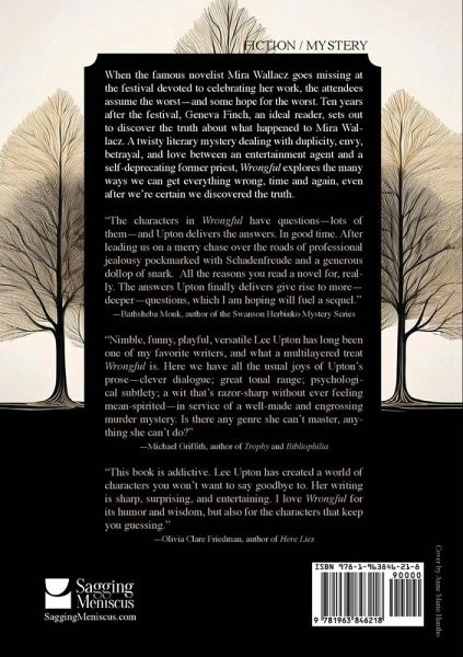 When the famous novelist Mira Wallacz goes missing at the festival devoted to celebrating her work, the attendees assume the worst-and some hope for the worst. Ten years after the festival, Geneva Finch, an ideal reader, sets out to discover the truth about what happened to Mira Wallacz. A twisty literary mystery dealing with duplicity, envy, betrayal, and love between an entertainment agent and a self-deprecating former priest, Wrongful explores the many ways we can get everything wrong, time and again, even after we're certain we discovered the truth.