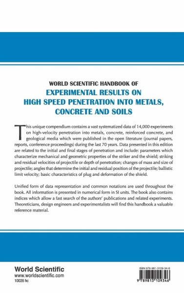 his unique compendium contains a vast systematized data of 14,000 experiments on high-velocity penetration into metals, concrete, reinforced concrete, and geological media which were published in the open literature (journal papers, reports, conference proceedings) during the last 70 years. Data presented in this edition are related to the initial and final stages of penetration and include: parameters which characterize mechanical and geometric properties of the striker and the shield; striking and residual velocities of projectile or depth of penetration; changes of mass and size of projectile; angles that determine the initial and residual position of the projectile; ballistic limit velocity; basic characteristics of plug and deformation of the shield. Unified form of data representation and common notations are used throughout the book. All information is presented in numerical form in SI units. The book also contains indices which allow a fast search of the authors' publications and related experiments. Theoreticians, design engineers and experimentalists will find this handbook a valuable reference material.