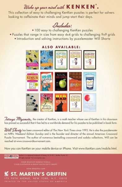 Wake up your mind with KenKen! This collection of easy to challenging KenKen puzzles is perfect for solvers looking to caffeinate their minds and jump-start their day. Includes: - 100 easy to challenging KenKen puzzles - Puzzles that range in size from easy 4x4 grids to challenging 9x9 grids - Introduction and solving instructions by puzzlemaster Will Shortz