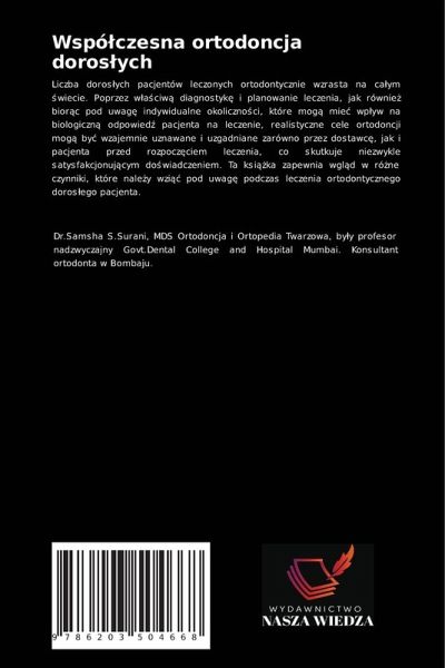 Liczba doros¿ych pacjentów leczonych ortodontycznie wzrasta na cäym ¿wiecie. Poprzez w¿äciw¿ diagnostyk¿ i planowanie leczenia, jak równie¿ bior¿c pod uwag¿ indywidualne okoliczno¿ci, które mog¿ mie¿ wp¿yw na biologiczn¿ odpowied¿ pacjenta na leczenie, realistyczne cele ortodoncji mog¿ by¿ wzajemnie uznawane i uzgadniane zarówno przez dostawc¿, jak i pacjenta przed rozpocz¿ciem leczenia, co skutkuje niezwykle satysfakcjonuj¿cym do¿wiadczeniem. Ta ksi¿¿ka zapewnia wgl¿d w ró¿ne czynniki, które nale¿y wzi¿¿ pod uwag¿ podczas leczenia ortodontycznego doros¿ego pacjenta.