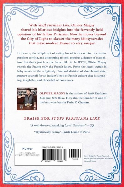 With Stuff Parisians Like, Olivier Magny shared his hilarious insights into the fervently held opinions of his fellow Parisians. Now he moves beyond the City of Light to skewer the many idiosyncrasies that make modern France so very unique. In France, the simple act of eating bread is an exercise in creative problem solving and attempting to spell requires a degree of masochism. But that's just how the French like it-and in WTF, Olivier Magny reveals the France only the French know. From the latest trends in baby names, to the religiously observed division of church and state, prepare yourself for an insider's look at French culture that is surprising, insightful, and chock full of bons mots. INCLUDES PHOTOGRAPHS